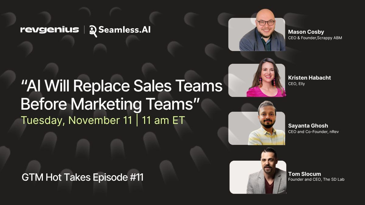 I’ll be live with Mason Cosby, Kristen Habacht and Sayanta Ghosh for GTM Hot Takes: “AI Will Replace Sales Teams Before Marketing Teams”